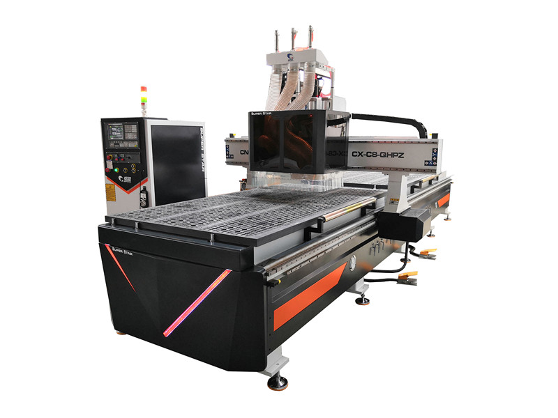 數(shù)控開料機(jī)分為單工位數(shù)控開料機(jī)和雙工序開料機(jī),現(xiàn)在很多板式家具廠都配備的是雙工位數(shù)控開料機(jī),那今天濟(jì)南超星數(shù)控就為大家介紹一些雙工位數(shù)控開料機(jī)的特點(diǎn)以及優(yōu)勢(shì)。雙工位數(shù)控開料機(jī)是具有兩個(gè)工作臺(tái)面的設(shè)備,板材在其中一個(gè)工位進(jìn)行加工的時(shí)候,另外一個(gè)工位同時(shí)可以進(jìn)行上料與下料的工作,其中一個(gè)工位加工完后可以直接在另外一個(gè)工位進(jìn)行加工,前后兩個(gè)工位交替工作,機(jī)器生產(chǎn)效率高,節(jié)省時(shí)間。一般像單工位的四工序數(shù)控開料機(jī)每天能開50張板子左右,雙工位的話能達(dá)到70張左右,效率大大提高。