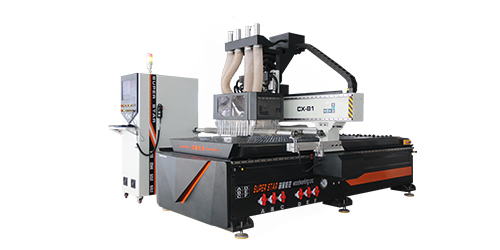 2門板柜體兩用:我們從結(jié)構(gòu)上來說,四工序?qū)儆诤喴讚Q刀機(jī)型,是應(yīng)用四個主軸通過氣動切換方式來實現(xiàn)換刀功能。做柜體有開料打孔的功能,而也可以用于簡單門型加工。