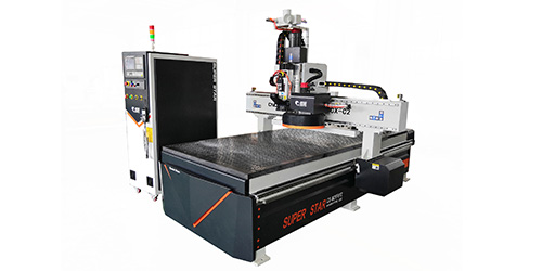 目前市場上的圓盤換刀開料機(jī)一般來說都配備8刀頭以上的圓盤刀庫。刀庫可隨龍門移動,能夠快速的進(jìn)行更換,節(jié)省了換刀時(shí)間。超星數(shù)控生產(chǎn)的圓盤自動換刀開料機(jī)除普通型號以外,還有加排鉆的一款設(shè)計(jì),除了加載的圓盤刀庫,還加載排鉆,能夠更好的滿足鉆孔的加工需求。
